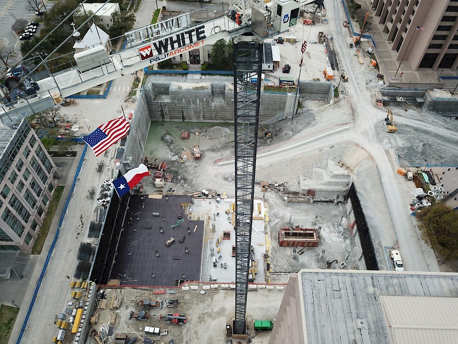 This project includes one of Austin's tallest free-standing construction tower cranes, reaching 297 feet above the site of the new Texas Capitol Complex. The tower lifts construction materials for the Texas Facilities Commission's 1601 Congress office building project. The 420,000 sf 12-story structure will feature offices, conferencing facilities, and an assortment of amenities for state government operations, including the State's Child Care Facility.