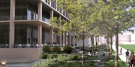 1601 Congress is one of two projects White Construction Company is building for the new Texas Capitol Complex, a master plan years in the making. WCC will also construct a seven-story, five-levels of parking, underground parking structure, the top of which will become a portion of the Complex’s new pedestrian-oriented Texas Mall.