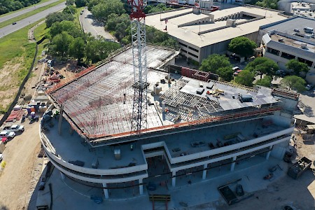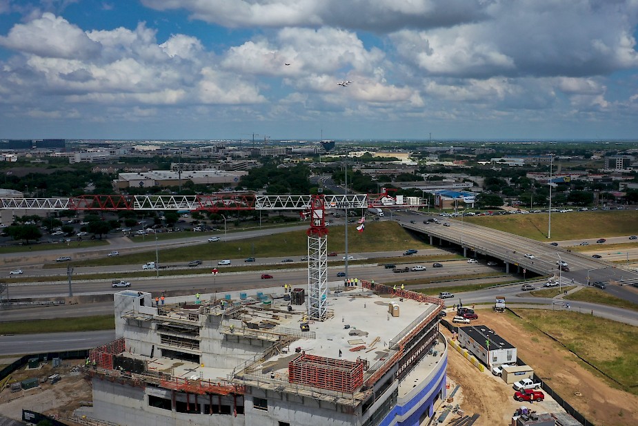 White Construction Company's 144 ft tower crane dominates the intersection of North Capital of Texas Highway at Route 183. The crane is capable of lifting almost 10 tons of materials for the new Porsche Austin dealership. The 198,305 sf luxury automobile dealership will be a sparkling addition to White Construction Company's portfolio of high-end automobile dealerships. Porsche Austin is scheduled for completion in Winter 2020.