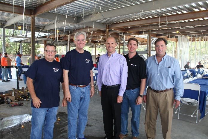 From left to right: WCC Senior Project Manager, Zane Cannaday, AANP CEO, Dave Heber, WCC Vice President, Rob Baugher, WCC Project Superintendent, Michael Swiney, and Tierra Concept's, Scott Taylor, pose for a photo opportunity during the Topping Out lunch. AANP had more than 50 employees present for the exciting event to tour the grounds and show their support.