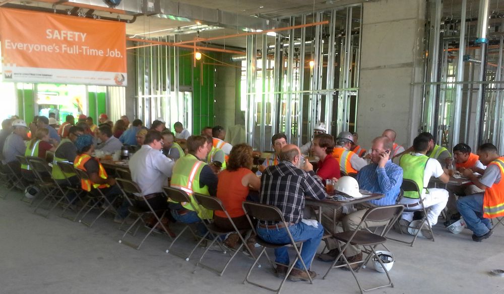 White Construction hosted an appreciation luncheon at the Belmont Village project with barbecue for guests and construction crew.