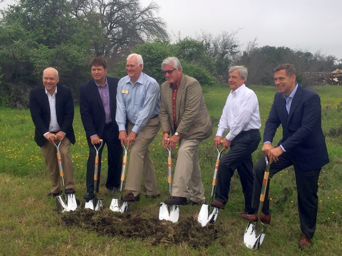 White Construction Company celebrates Groundbreaking of The Delaney at Georgetown Village, a new senior living facility for LCS Development in Georgetown, TX. Shovel operators are (L-R): Chris Manning (LCS Project Development Manager), Peter Muhlbach (LCS Senior Vice President and Director of Operations), John Hesser (City of Georgetown Council Member District 3), Lee Lyles (LCS Vice President and Director of Project Development), Neel White (White Construction Company CEO), and Paul Donaldson, AIA, LEED AP (PRDG Co-founder and Principal).