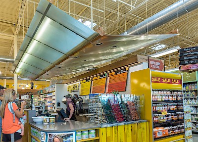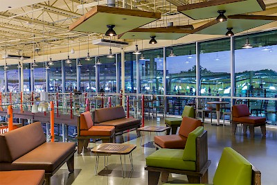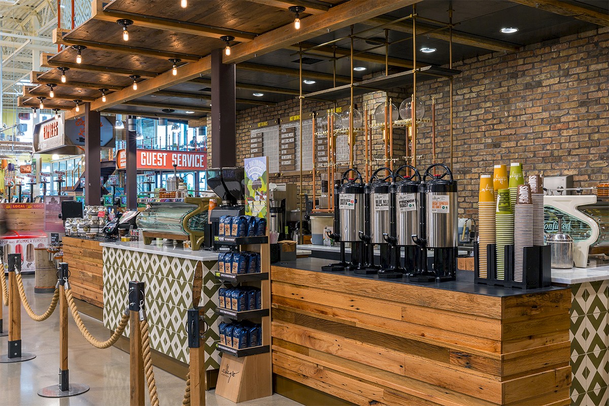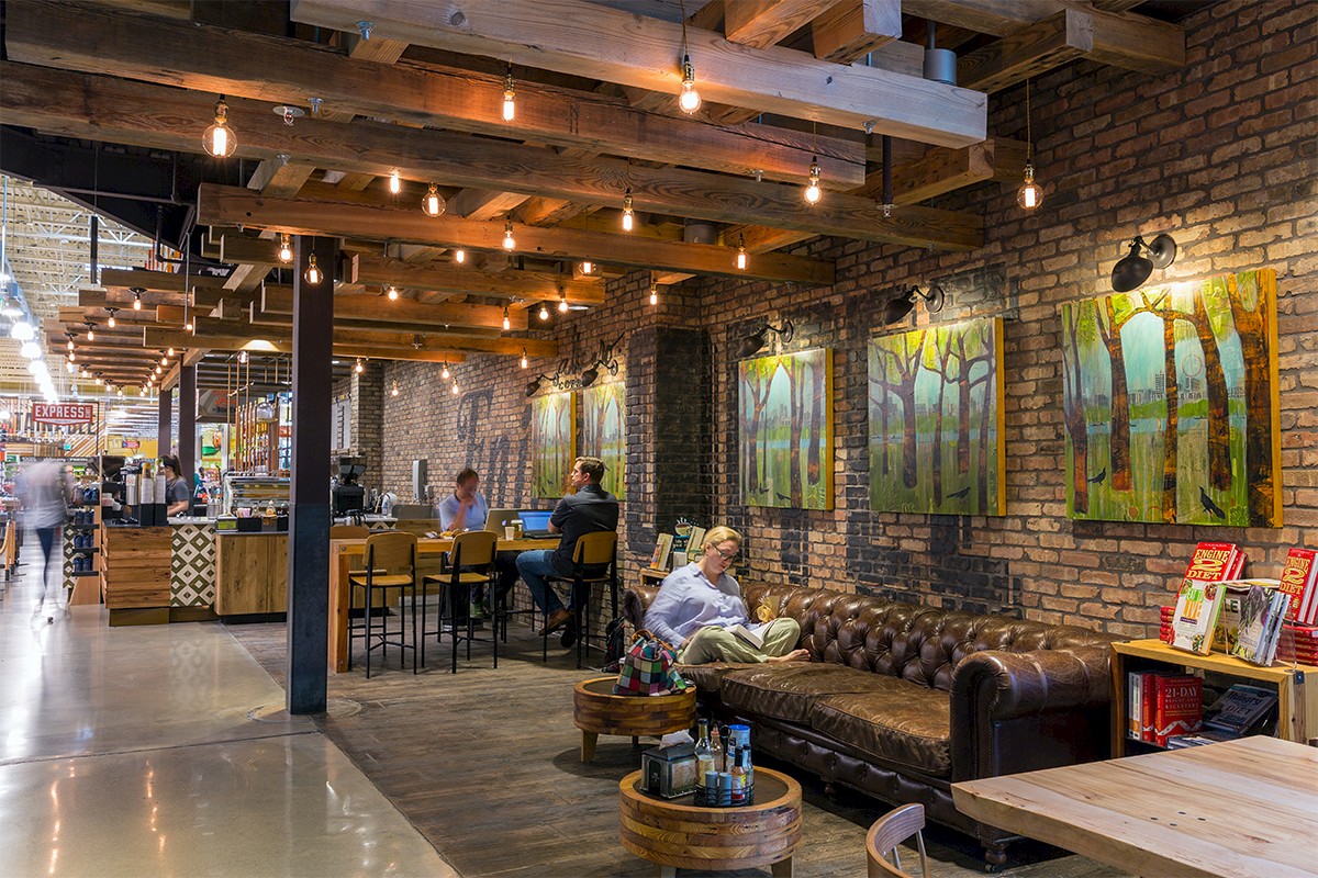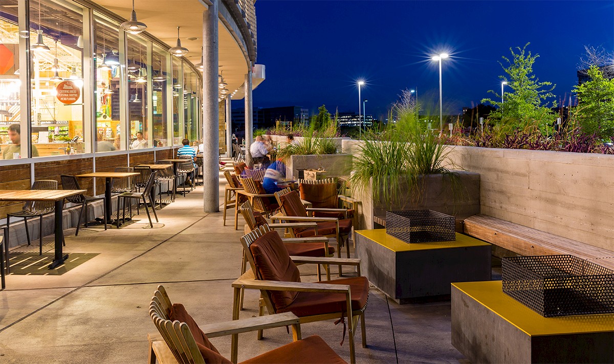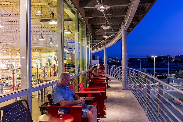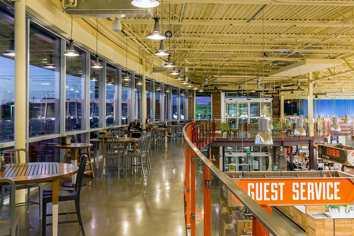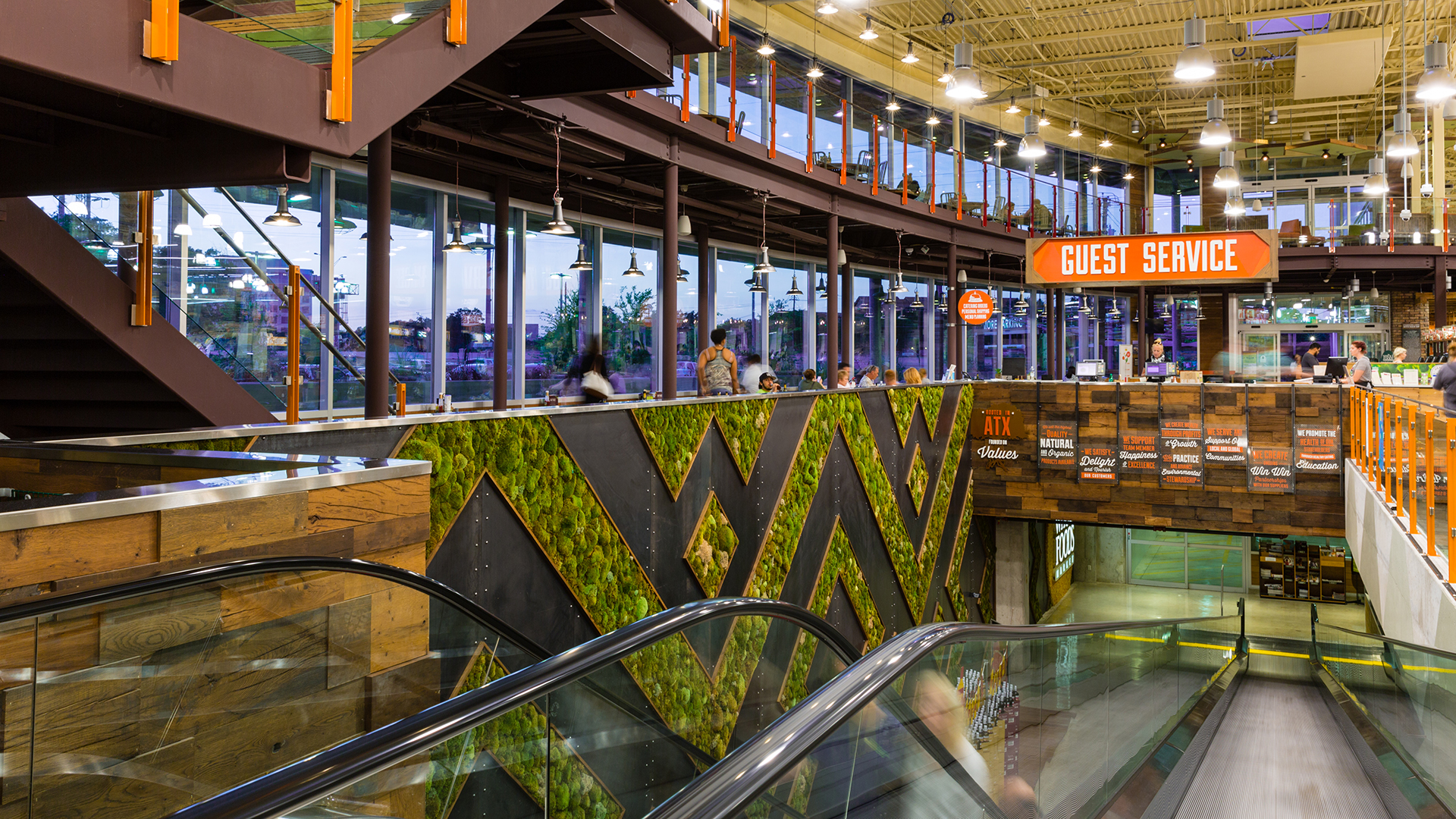 This Whole Foods Market, located in the upscale Domain mixed-use development in northeast Austin, is one of the most visible and creative Whole Foods Markets projects to date in the Southwest Region. The store boasts 50,000 sf of shopping, underground parking for inclement weather, a beer barn with 45 beers on tap, as well as an extensive outdoor venue, including a balcony of seating. An unexpected extension of the outdoor entertainment area includes a shipping container converted into a serving bar! This unique idea required full food and beer licensing. The project was built on a raised slab and features innovative interior finishes for this high-end grocery shopping extravaganza.