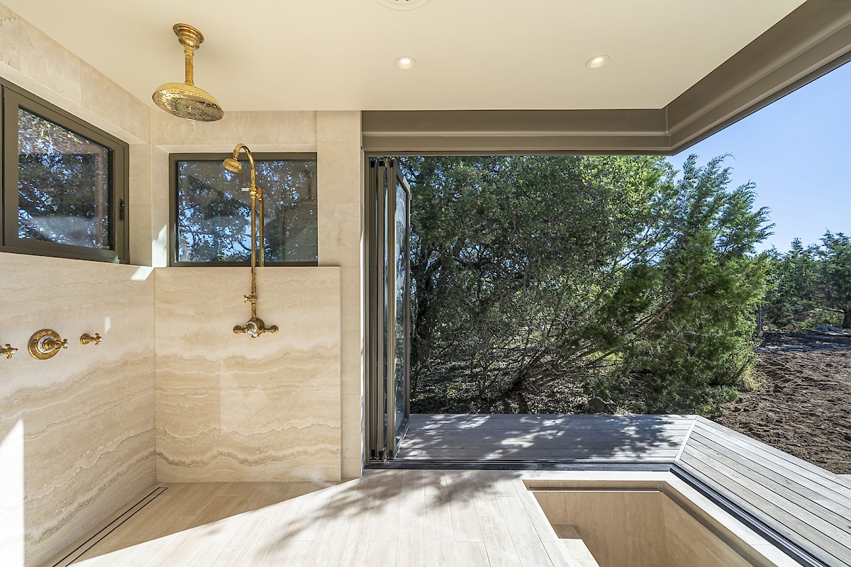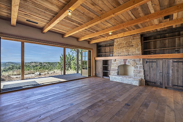 This residence, constructed in the heart of the beautiful Texas Hill Country, was designed to appear as a century-old homestead. Materials and amenities were lovingly collected over the course of decades to come together in a labor of love and fulfillment of a dream. Four separate structures totaling 11,800 sf of conditioned space, along with a three-car garage, were constructed on two lots in two subdivisions that backed up to one another. Reclaimed materials were used extensively throughout the project and included reclaimed wall and ceiling finishes, reclaimed interior doors, reclaimed furniture repurposed as vanities, reclaimed light fixtures, and two reclaimed ranges.