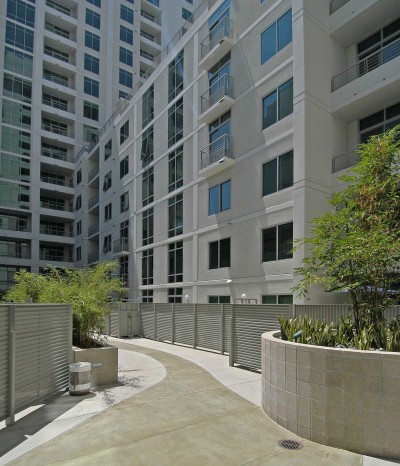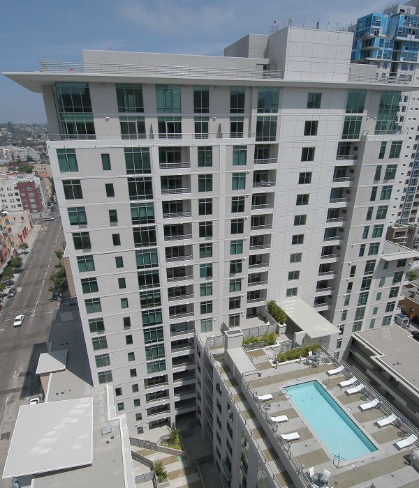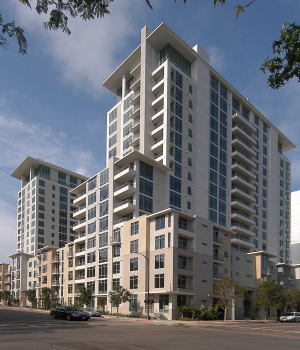 The community encompasses two 18-story residential towers, which offer a total of 389 luxury units and 425 parking stalls enclosed within the building envelope of 536,000 square feet. A unique tower top provides identity for the project on the San Diego skyline as well as terrace recesses and shade to the penthouse units.