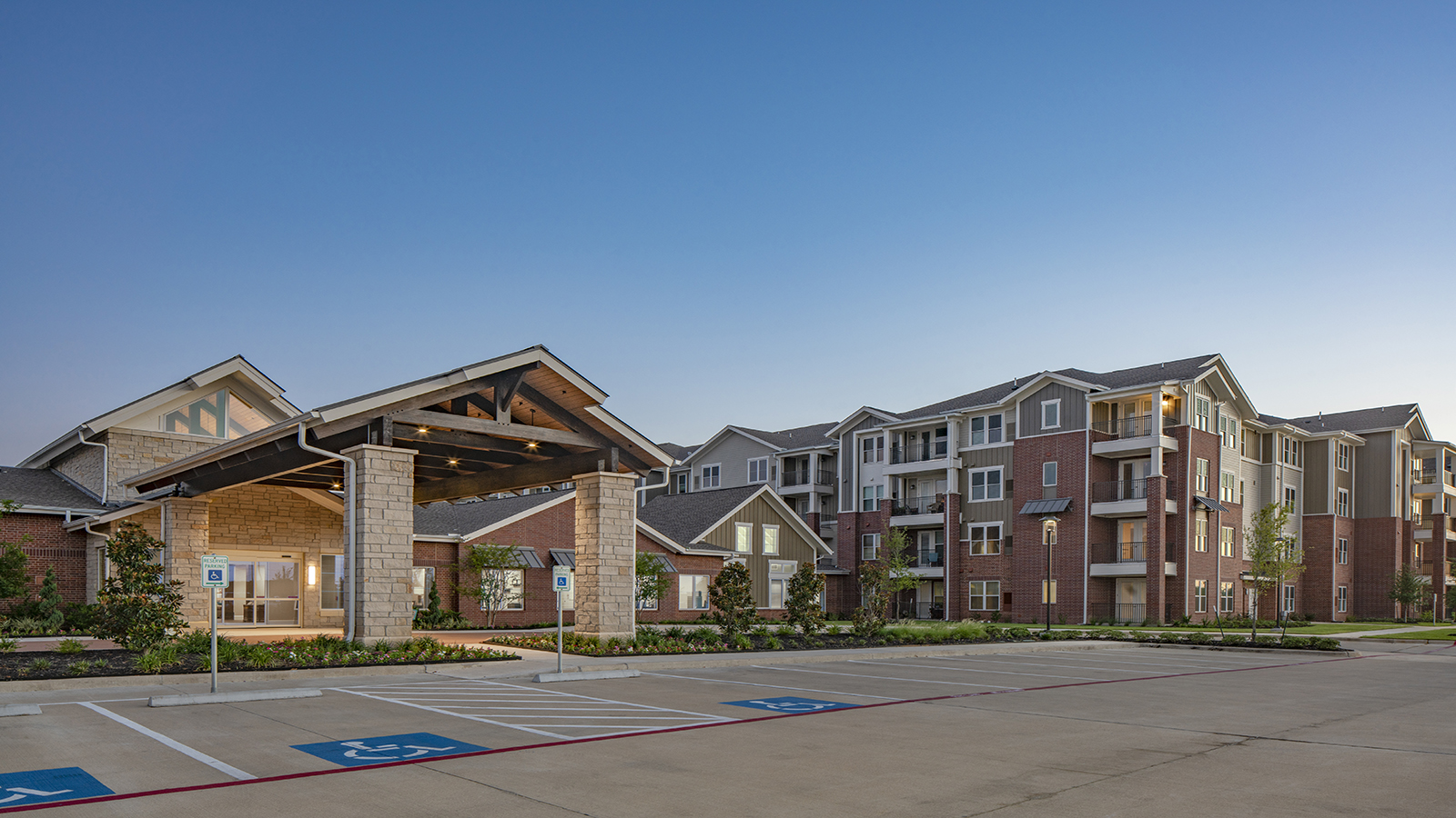 The Delaney at Parkway Lakes is situated on a 10 acre greenfield site in Richmond, Texas. It is one of several projects White Construction Company built Life Care Services, as they expanded their portfolio of high-end senior living communities in Texas. This community is comprised of memory care, assisted, and independent living units.