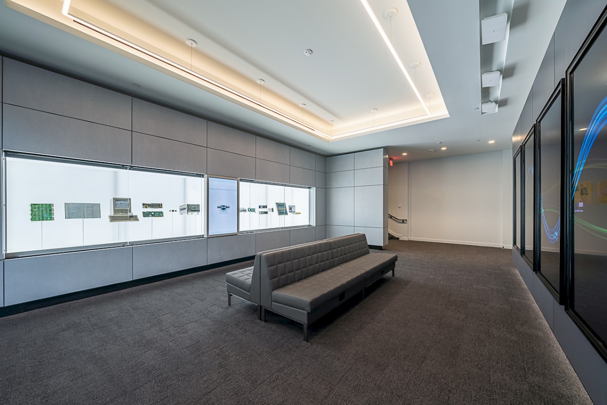 This is a small project with a BIG story. NI (formerly National Instruments) tells its story in its Founders Hall, where the company and its technologies are put into a sparkling display space with an interactive timeline to explore its 40-year history.