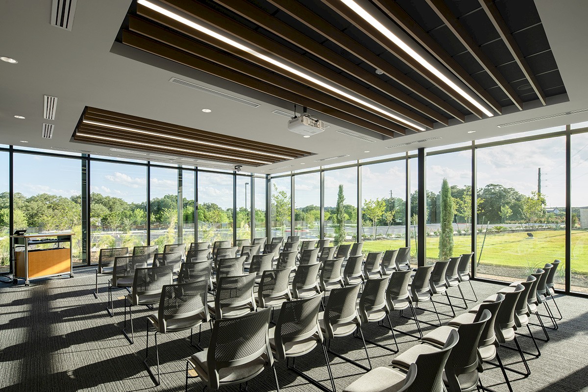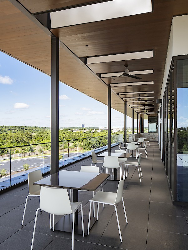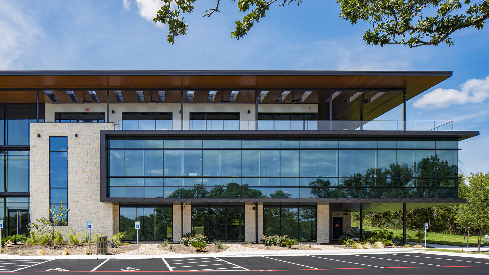 AANP new headquarters building is Class-A office space within a 3-story building on 5 acres in southwest Austin, Texas. The design is intended to bring outside in by use of floor to ceiling windows, soaring views, and incorporation of natural materials.