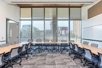White Construction built one of the first two buildings at 1601 Congress - the Barbara Jordan State Office Building. The 420,000 sf 12-story office building features conferencing facilities and an assortment of amenities for government operations, including the State’s Child Care Facility. A food service operation supports the building’s activities on the first floor facing and serving the Texas Mall. The café/restaurant space is accessible to State employees and visitors. The second floor is a Conference Room Level for State functions.