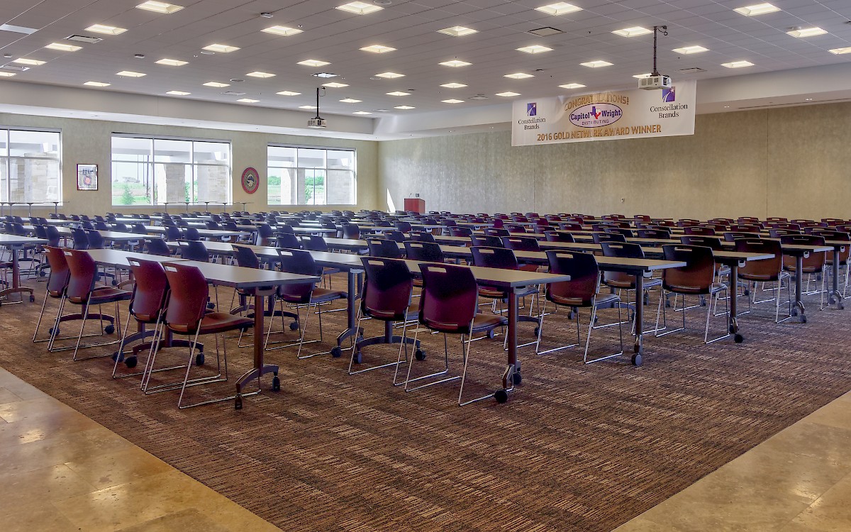 This new 439,000 sf corporate headquarters office and distribution warehouse facility includes 39,237 sf office space and 25,848 sf of ancillary space with general storage, sign shop, and POS storage. An additional 13,000 sf mezzanine office space is situated above the ancillary space. Site work on the 117 acres included water, storm, and sanitary systems to support the building as well as sedimentation and water quality ponds. Creation of a large creek on the south side of the site re-established wetland on the property.