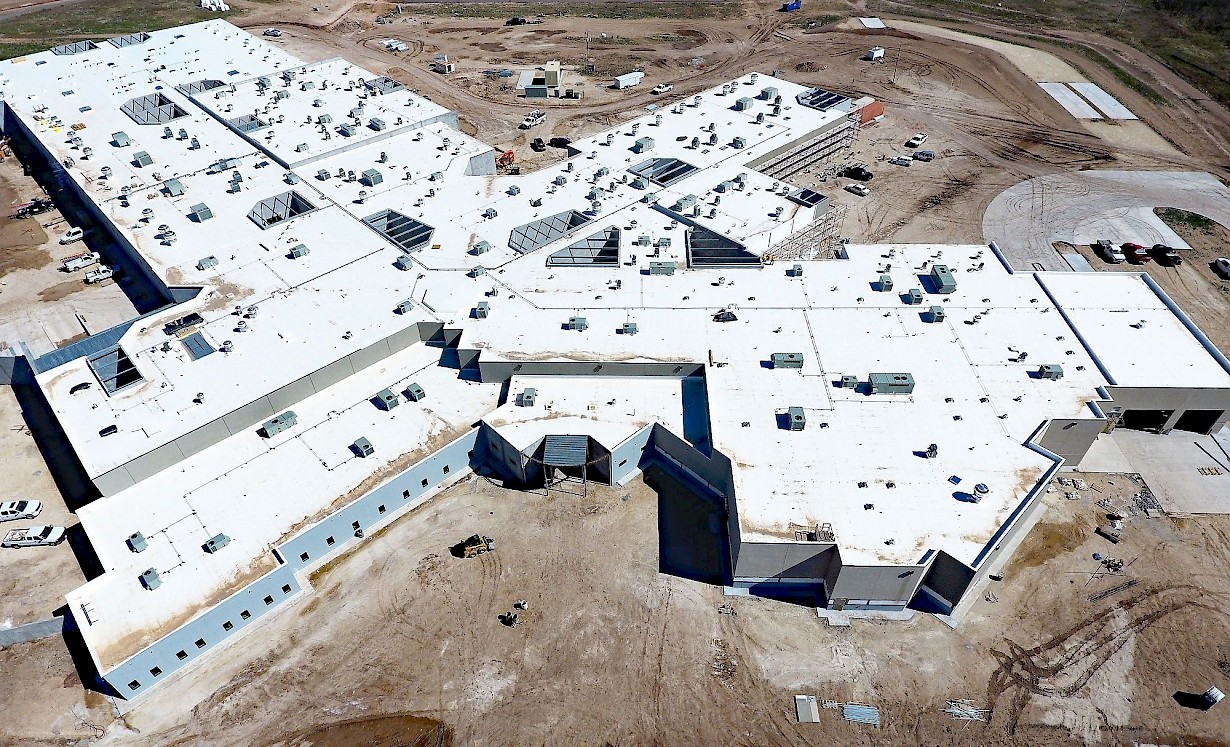 The Tom Green County Detention Facility is a new 215,647sf direct-supervision adult detention facility located in San Angelo, Texas. The base building contains 552 beds in various housing modalities including separation cells, single cells, multiple occupancy cells, and dormitories. The facility includes a variety of support spaces including intake, release, visitation, public lobby, jail administration offices, food service, laundry, truck dock, warehouse, medical, control rooms, exercise areas, multi-purpose rooms and maintenance areas. Of the 13 identified building areas, two areas are two-story and the balance are one-story.