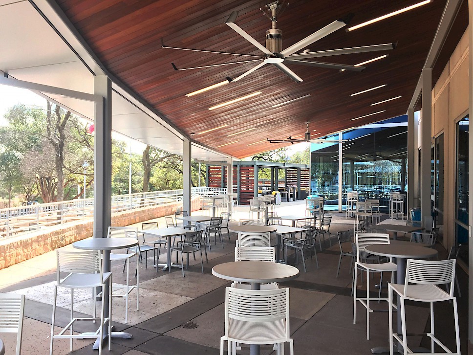 White Construction Company recently completed an outdoor amenity project for National Instruments, erecting five structures on two existing patios with steel canopies and stained concrete that visually connects the old space with the new.