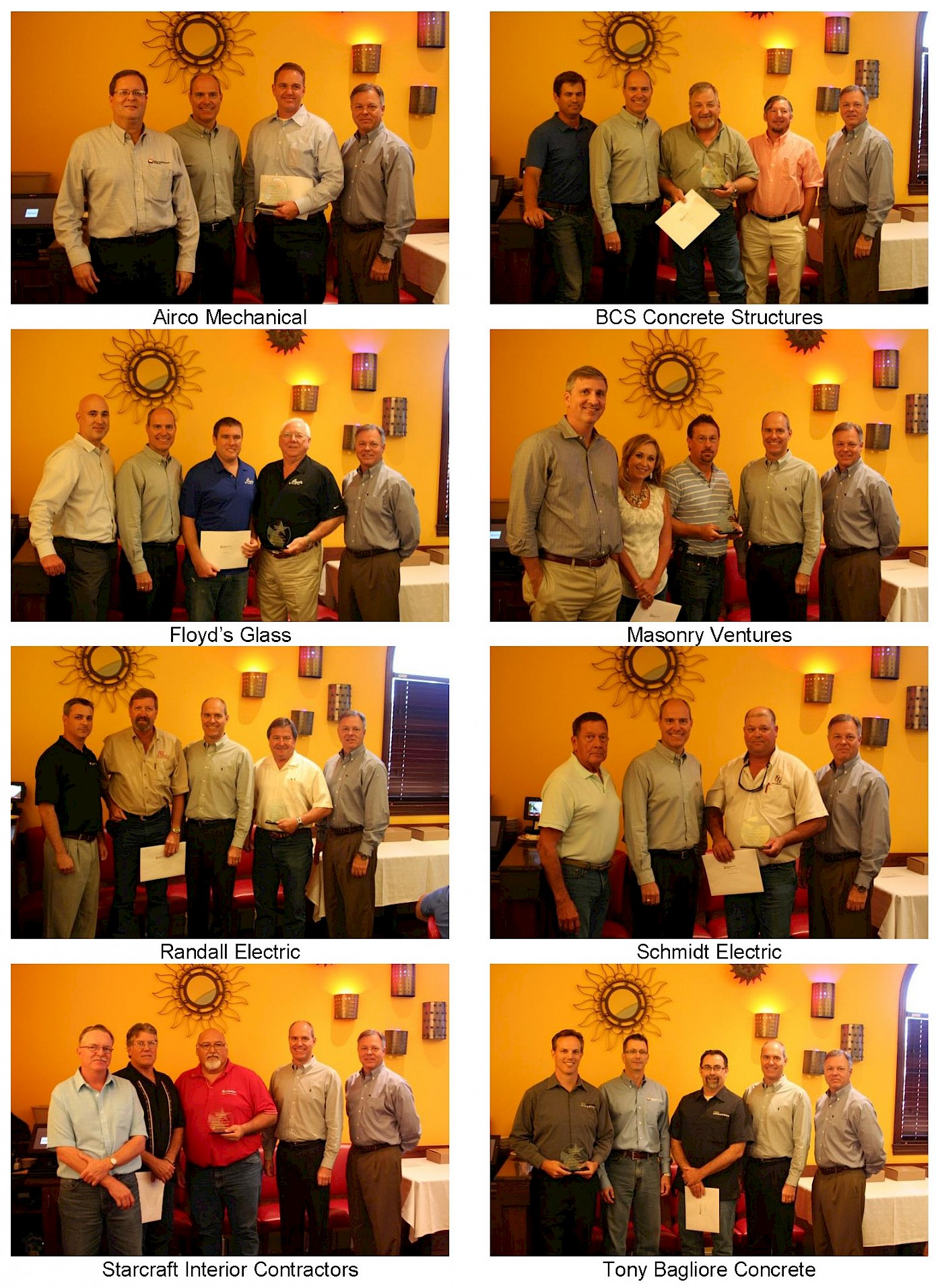 White Construction Company’s Austin-area employees evaluated current subcontractors and suppliers based on consistent excellence in Safety, Estimating, Project Management, Contract Administration, and Product Quality. We want to thank and reward these outstanding subcontractors and suppliers. Further, we want to work with subcontractors who have the same safety, cost, and quality values as White Construction Company. After the votes were tallied, eight subcontractors were selected as 2015’s Top Performers. We celebrated their excellence at an awards luncheon earlier today. Congratulations to all!