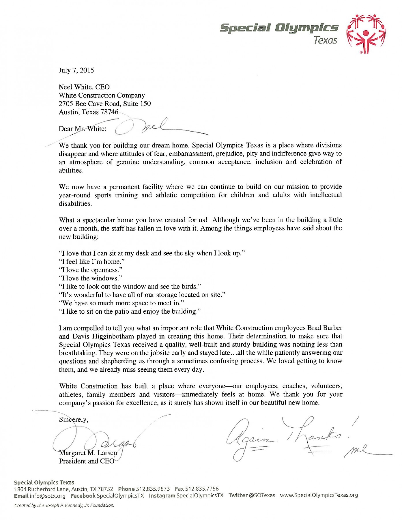 Appreciation Letter from Special Olympics Texas July 14, 2015 1:00 pm Back to All News Please visit Special Olympics Texas!