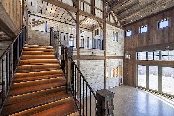 This residence, constructed in the heart of the beautiful Texas Hill Country, was designed to appear as a century-old homestead. Materials and amenities were lovingly collected over the course of decades to come together in a labor of love and fulfillment of a dream. Four separate structures totaling 11,800 sf of conditioned space, along with a three-car garage, were constructed on two lots in two subdivisions that backed up to one another. Reclaimed materials were used extensively throughout the project and included reclaimed wall and ceiling finishes, reclaimed interior doors, reclaimed furniture repurposed as vanities, reclaimed light fixtures, and two reclaimed ranges.