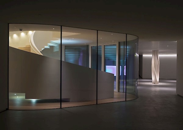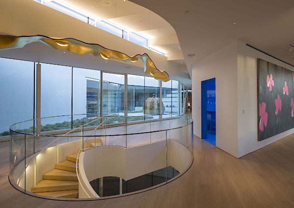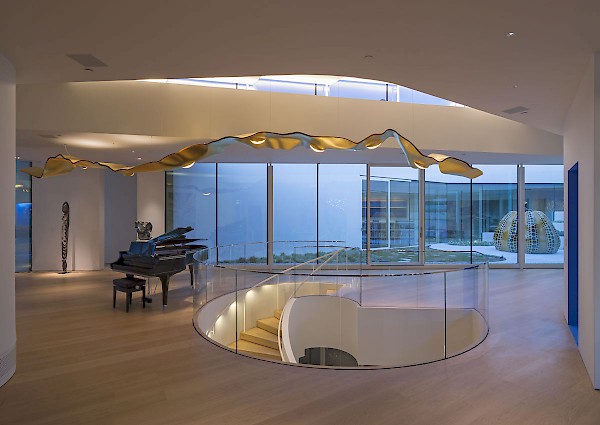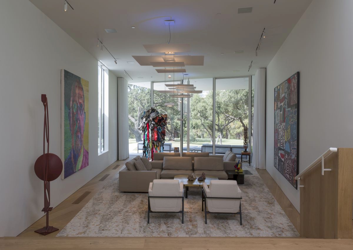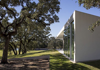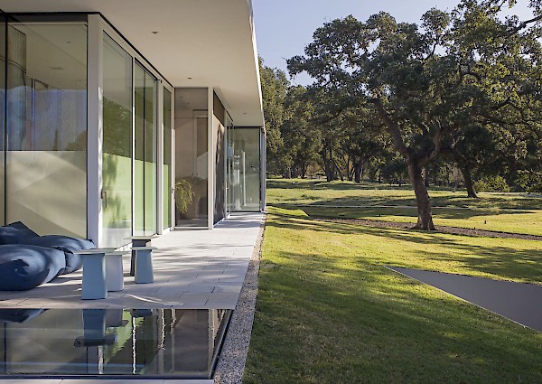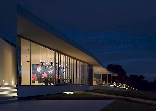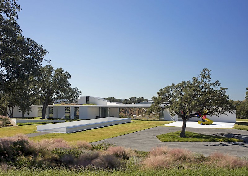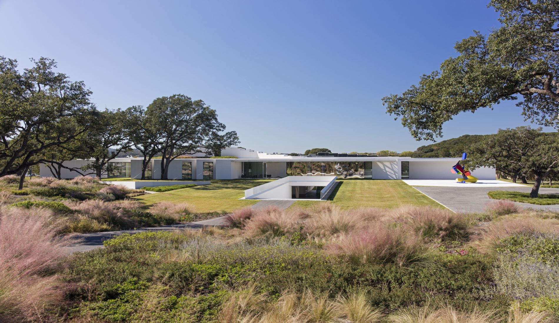 This Austin home is situated on the banks of a lake. Construction included the main residence, barn, sport court, pool, art installation, entertainment facilities and boat dock with extensive renovations to a cottage and existing residential building.
