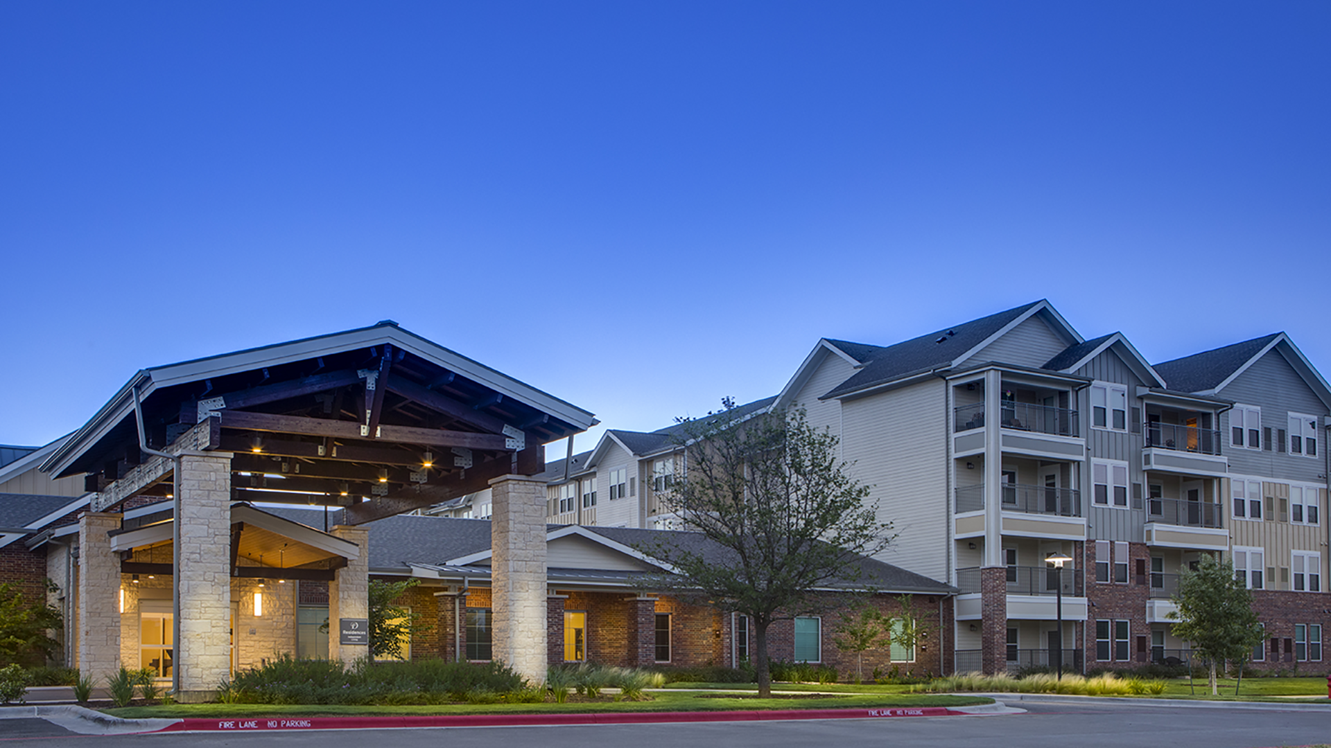Located on 13.9 acres on the shores of Lake Waco, The Delaney offers 80 independent living apartments, 56 assisted living beds and 32 memory care units. Four-story wood frame residential wings are connected by a one-story commons/clubhouse building. A four-story metal framed health center features amenities for activities, wellness, dining, and support activities. Courtyards, walking paths, parking, and covered drop off areas enhance the campus for residents, staff, and visitors. Final inspections identified zero deficiencies and the project fulfilled all Texas Health and Human Services licensing requirements, upon first inspection.