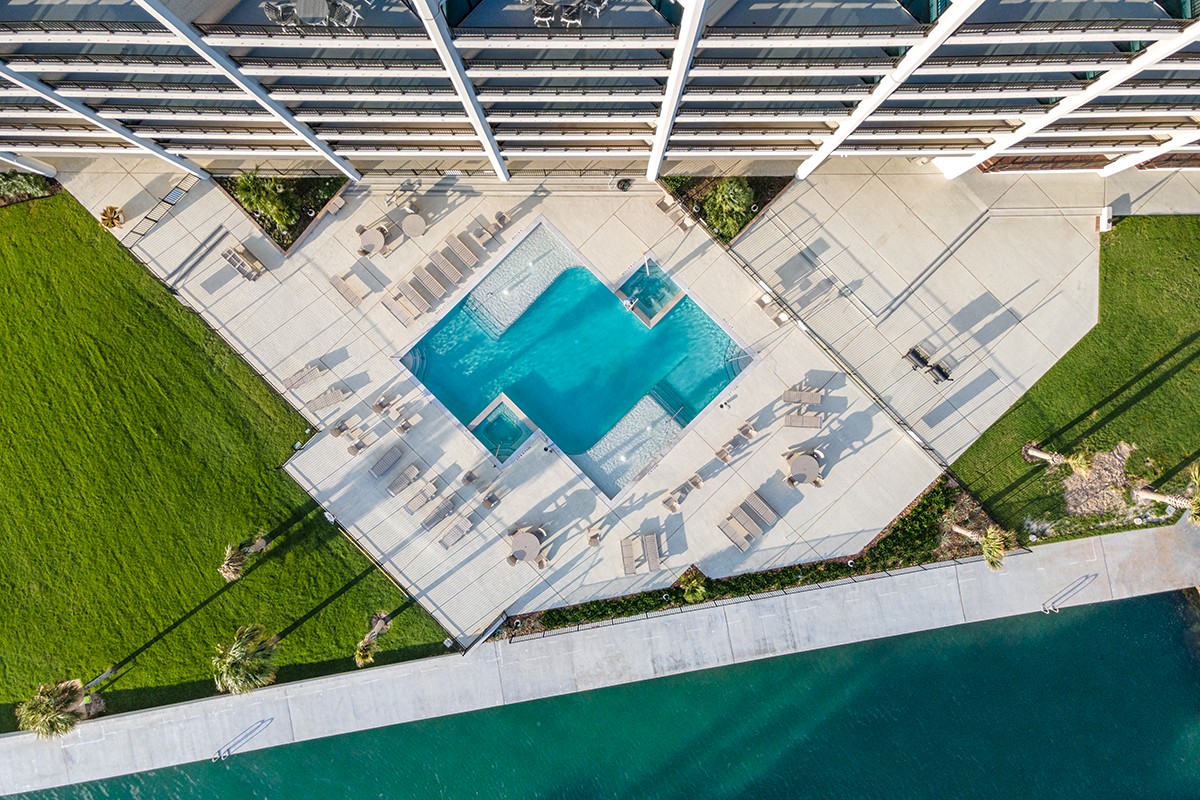 Port Aransas, Texas was ground zero when the devastating Hurricane Harvey made landfall in August 2017. White Construction Company was called upon to help rebuild one of the area’s iconic condominium developments, Cline’s Landing. The project consisted of two eight-story buildings connected by an atrium with 108 individual units. About 95% of the interior was removed while the concrete structure and some of the skin remained in place once demolition was complete.
