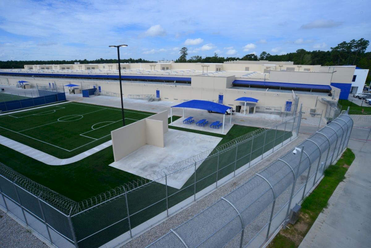 Construction of this Immigration and Customs Enforcement processing facility included site development, construction of a parking garage with secured access, and outdoor recreation areas. The two-story main multi-functional building houses 1,100 inmate beds and is designed to meet ICC-500 requirements for up to a 160-mph wind speed generated by a hurricane.