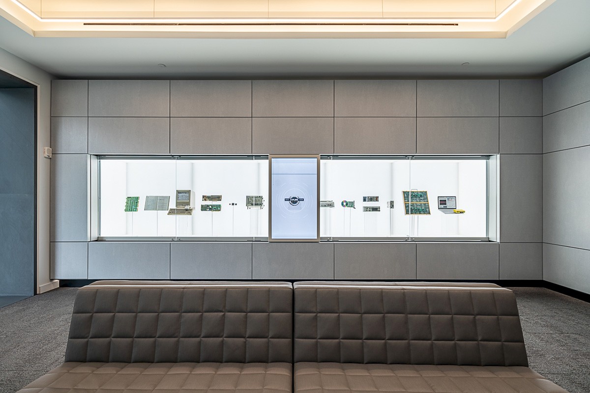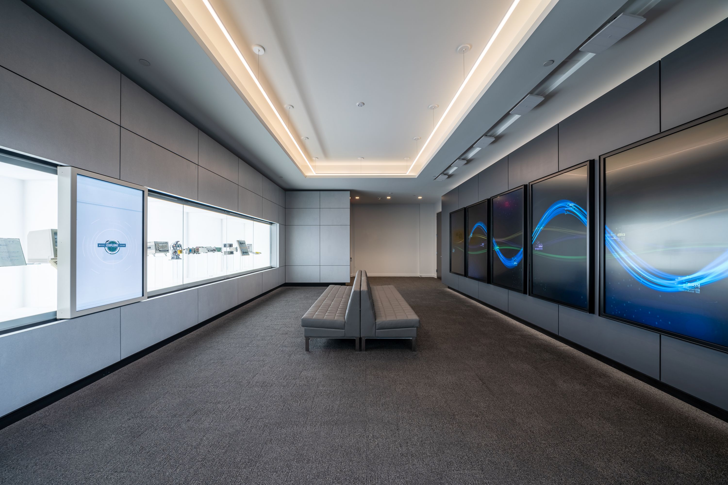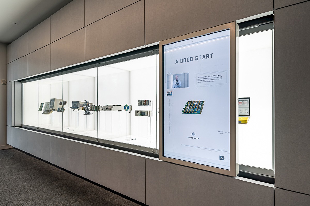 This is a small project with a BIG story. NI (formerly National Instruments) tells its story in its Founders Hall, where the company and its technologies are put into a sparkling display space with an interactive timeline to explore its 40-year history.
