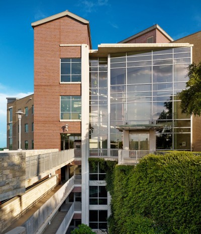 White Construction collaborated with the design team during preconstruction to work through the challenges of a unique site—the side of an existing solid limestone hill. Three levels of parking are located below the first office floor, thus requiring excavation of more than 100,000 cubic yards of rock. The result? A stunning sheer rock wall, located adjacent to the separate parking garage, which received a structurally engineered rock wall using 1.5 ton boulders. The landscape design took advantage of this natural feature by providing a six-story atrium lobby, which opens from the lower parking garage to the upper office floors and has a breathtaking view of the grotto area.