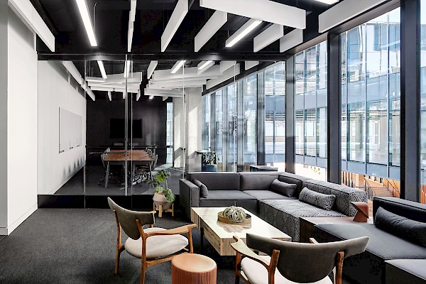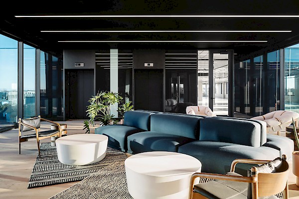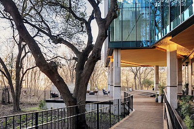 Bouldin Creek is so Austin! This high-end office project is in the Boulin Creek Neighborhood...quintessential high-energy "Austin Cool." Situated on a four acre site, the building was designed with respect for the neighborhood context and around magnificent Live Oak trees that lend Austin its character. In an expression of the new work place, outside spaces come inside, with mural art punctuating the environment.